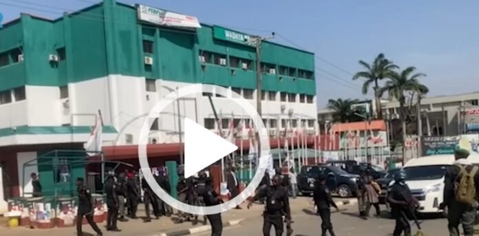 The video captures the moment the Minister of the Federal Capital Territory (FCT), Nyesom Wike, left the Peoples Democratic Party (PDP) Headquarters in Abuja on Tuesday.